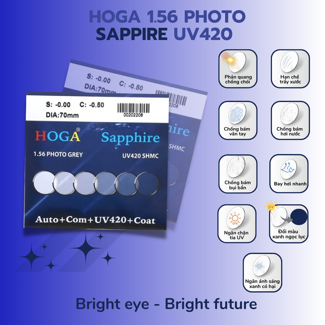 Tự động chuyển màu theo cường độ tia UV, bảo vệ mắt như kính mát khi đi ngoài trời.